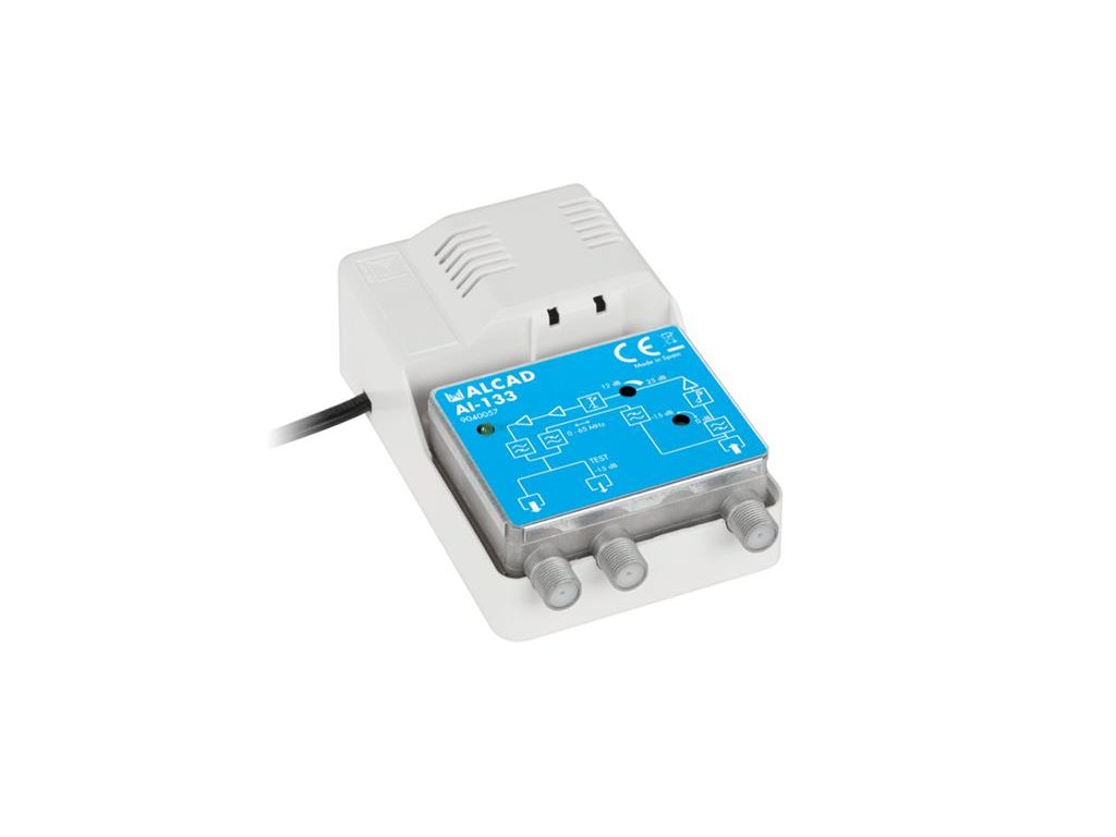 Zosilňovač AI-133 je bytový zosilňovač pre pozemný analógový a digitálny príjem TV/FM signálov. Má jeden vstup VHF/UHF a dva výstupy. Je vhodný na použitie ako bytový zosilňovač v káblových rozvodoch. Zosilňovač je vyrobený v ZAMAC odliatku ktorý má vynikajúce tieniace účinky a je krytý plastovým obalom. Zosilňovač má pasívny spätný kanál 5-65 MHz a reguláciu zosilnenia a náklonu.