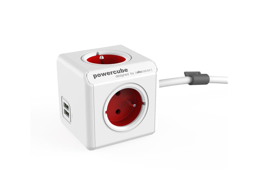 ALLOCACOC Zásuvka PowerCube EXTENDED USB s káblom 1.5m červená