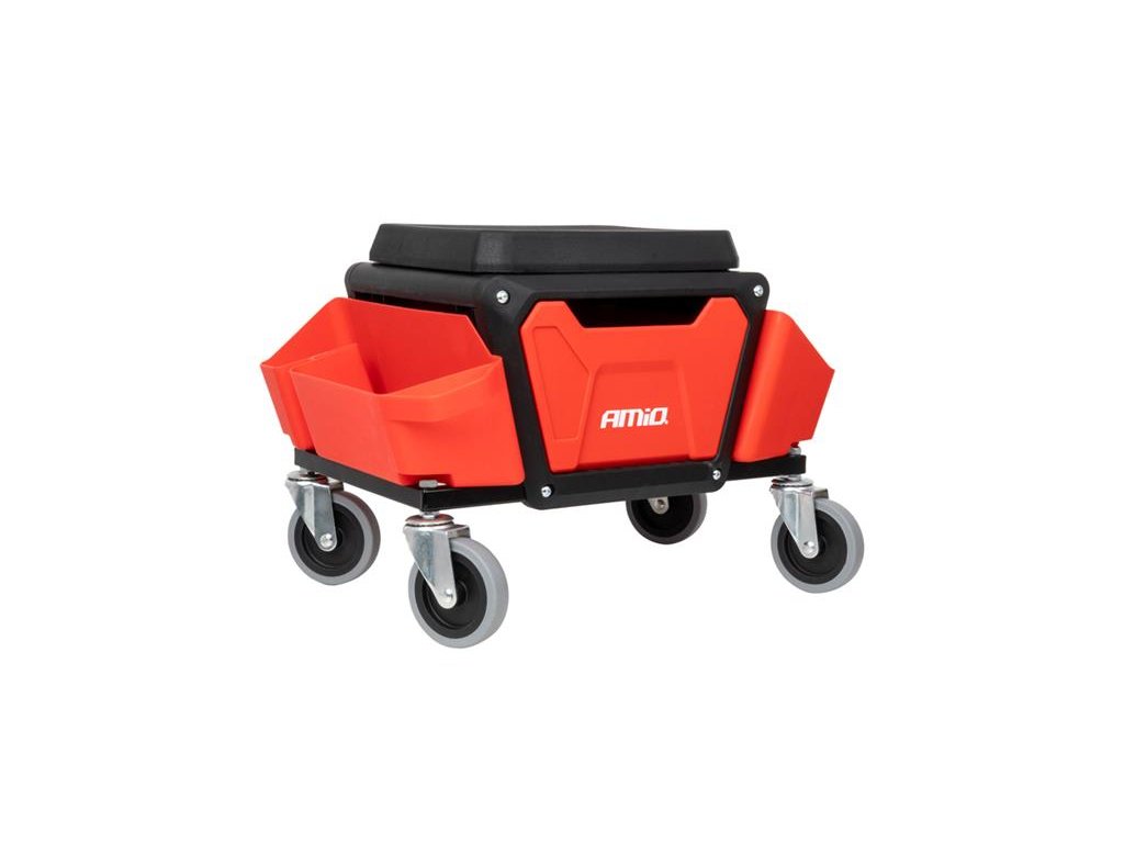 Dielenské sedadlo na kolieskach s úložným priestorom na náradie je dokonalým riešením pre ľudí, ktorí trávia dlhé hodiny v dielni alebo garáži. Poskytuje pohodlie pri práci, umožňuje vám voľný pohyb po pracovnej ploche a na nej umiestnená vstavaná priehradka na náradie vám umožňuje uložiť najpotrebnejšie príslušenstvo na dosah. Sedák vďaka svojej pevnej konštrukcii unesie až 150 kg, čo zaručuje jej odolnosť a stabilitu.