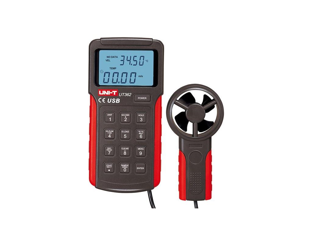 Anemometr UNI-T UT362 USBNa tento výrobok poskytujeme 3 roky záruku. Anemometer UNI-T UT362 USB je malý, stabilný a spoľahlivý ručný prístroj na meranie rýchlosti vetra a jeho teploty s oddeleným čidlom merania rýchlosti, ktorý zabezpečuje rýchlu detekciu, nízku spotrebu a vysokú presnosť. Anemometer umožňuje automatické meranie vo vopred stanovených intervaloch 0,5 až 255 sekúnd a uloženie hodnôt do vnútornej pamäti v počte až 2044 záznamov a neskoršie prenesení do počítača cez rozhranie USB. Veľký podsvietený displej 57 mm x 37 mm, ktorý súčasne zobrazuje rýchlosť i teplotu vetra.
