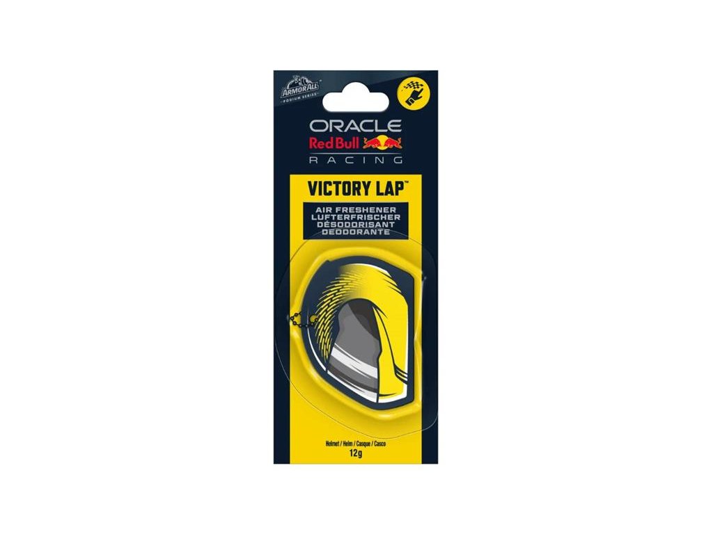 Prineste vzrušenie z trate do svojho auta s vôňou helmy Armor All osviežovač vzduchu. Tento prémiový osviežovač vzduchu do auta inšpirovaný závodmi sa ľahko zavesí na vaše spätné zrkadlo. Vôňa má na jednej strane helmu a na druhej strane logo Oracle Red Bull Racing. Vôňa The Victory Lap™ kombinuje drsnú oceánsku kolínsku s tónmi citrusov a vytvára bohatú, dynamickú vôňu do auta. Vôňa prevonia váš interiér vzduchu po dobu až 40 dní.