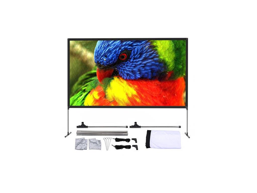 Zabudnite na obmedzenie! Vďaka stabilnému stojanu, ktorý je vyrobený z vysoko kvalitného hliníka, môžete filmy voľne sledovať aj vonku. Nemusíte sa báť, že by pri silnom vetre obrazovka spadla a poškodila sa. Výrobok je mimoriadne odolný a vhodný do nepriaznivých poveternostných podmienok. Montáž stojana je rýchla a bezproblémová - zariadenie tak zmontujete a rozložíte kdekoľvek v priebehu niekoľkých okamihov. Vďaka prenosnej konštrukcii a nízkej hmotnosti si obrazovku môžete zobrať so sebou na cesty a vonkajšie akcie.