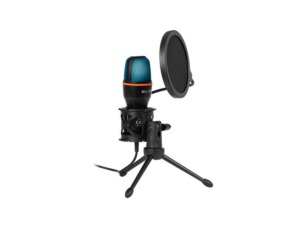 Kvalitný herný mikrofón BLOW s plnou výbavou, ktorý umožňuje okamžité použitie. Vďaka pripojeniu cez USB rozhranie je mikrofón ideálny pre počítače alebo notebooky na nahrávanie rôznych druhov zvukov, streamovanie a ďalšie účely.