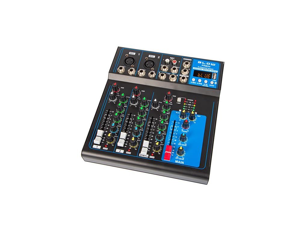 Pult mixážny BLOW PRMX 4Kompaktný štvorkanálový mixážny pult BLOW PRMX 4. Vďaka svojej rozsiahlej funkcionalite ho môžete využívať v nahrávacom štúdiu alebo na hudobných akciách. Disponuje USB vstupom pre prehrávanie MP3 súborov a jack konektorom pre efektívne procesory.