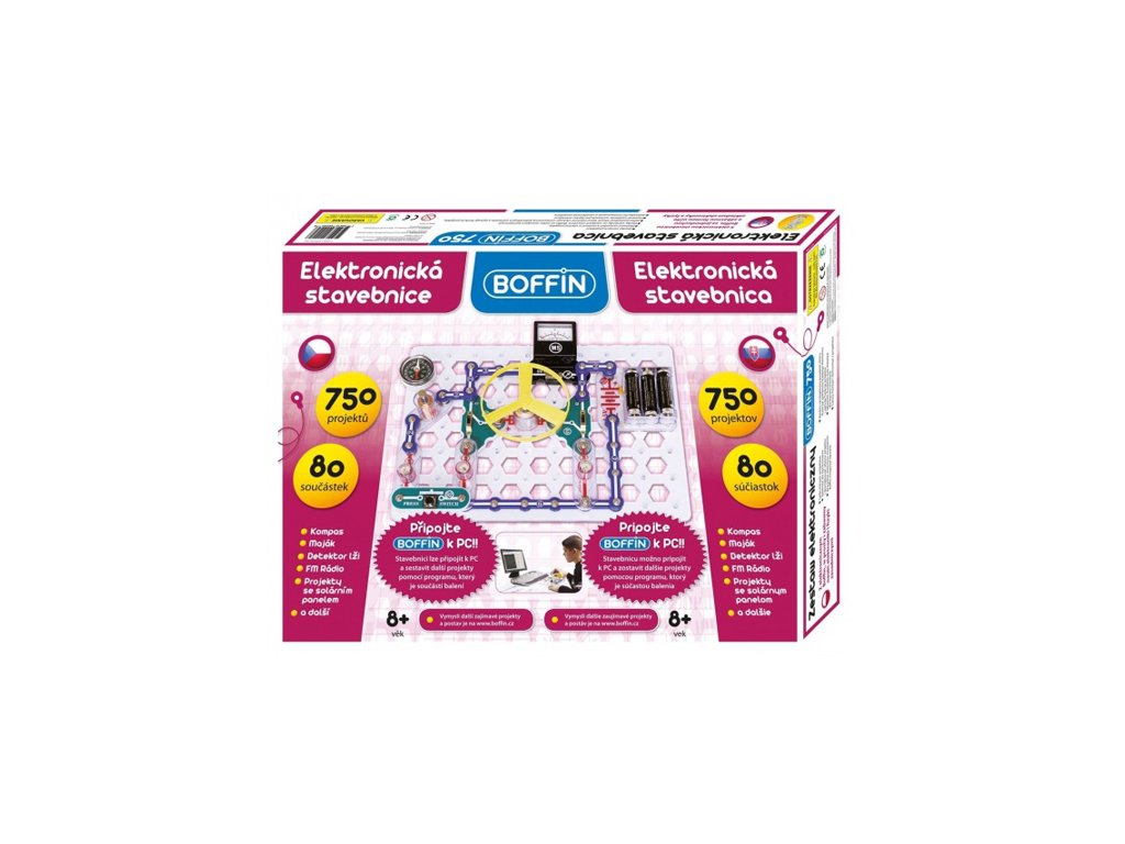 Elektronická stavebnica BOFFIN I 750Elektronická stavebnica Boffin 750 obsahuje 80 súčiastok. Základom všetkých projektov je doska, na ktorú sa jednotlivé súčiastky jednoducho nacvakávají. V manuáli je popísané, čo by projekt mal robiť a čo od neho očakávať. Po zostavení si môžete skontrolovať, či všetko funguje. S existujúcimi súčiastkami môžete vymyslieť stovky ďalších projektov, ktoré nie sú popísané v manuáli alebo môžete kombinovať so súčiastkami a projekty v ostatných stavebniciach Boffin.