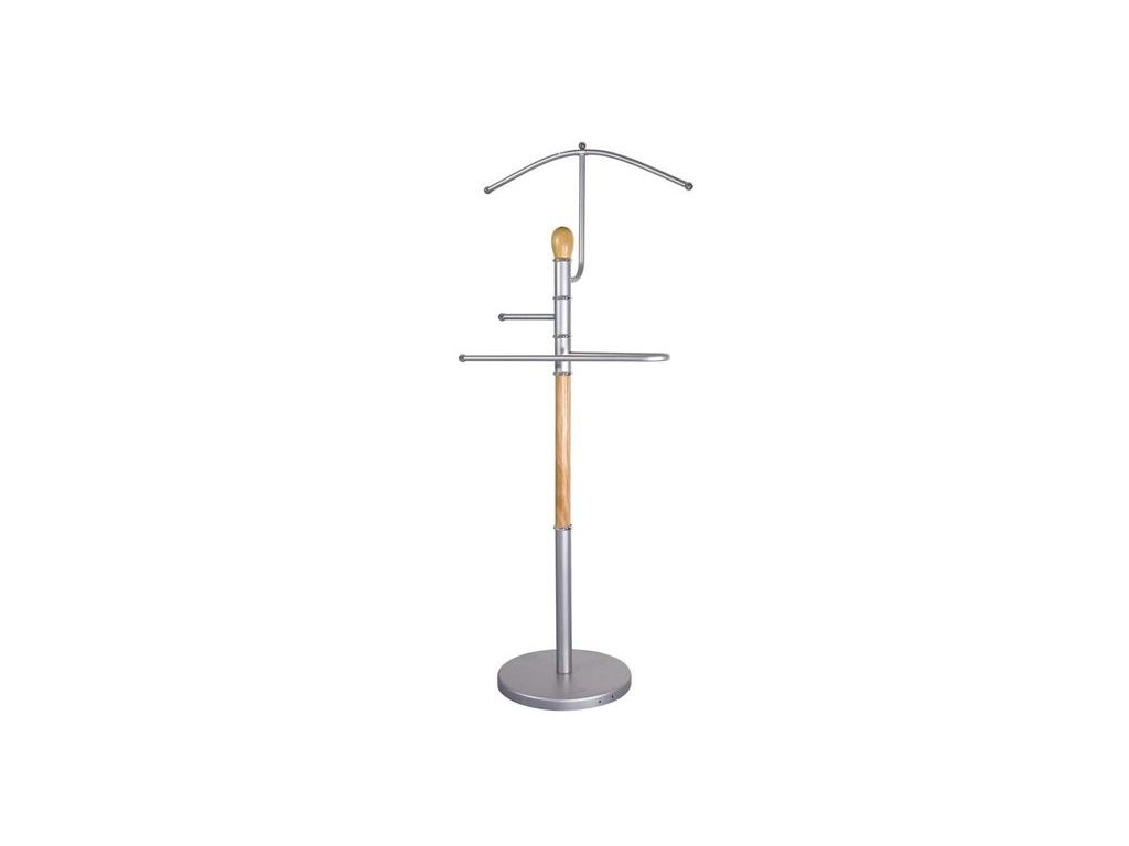 Nemý sluha v prevedení chrómu a dreva je praktický pomocník na odkladanie odevu a najrôznejšieho oblečenia. Výška sluhu je 107 cm. Konštrukcia má stabilnú základňu, chróm je v matnom prevedení, drevo vo svetlo hnedej farbe.