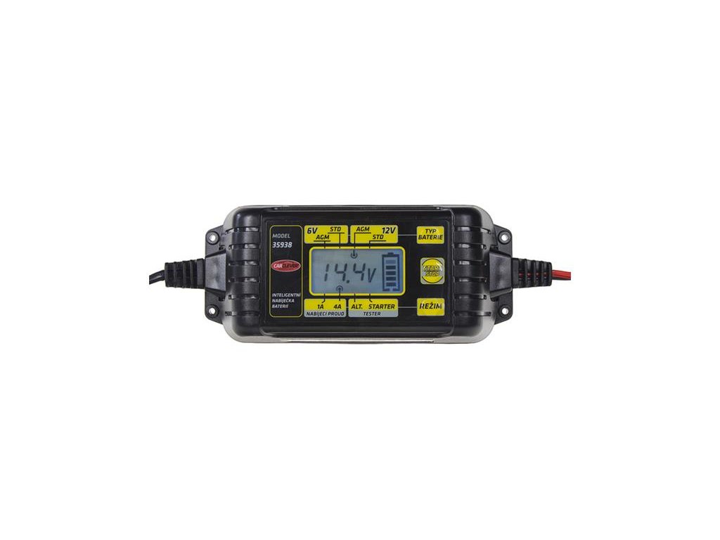 Nabíjačka akumulátorov CARCLEVER 35938 6V/12V 4AInteligentní miniaturní nabíječka s informačním LCD, řízená mikroprocesorem pro olověné akumulátory a vestavěným testerem alternátoru a baterie. Ideální pro nabíjení a údržbu všech typů olověných baterií 6 V/12 V (WET, MF, AGM, GEL). Po nabití akumulátoru se nabíječka automaticky přepne na udržovací nabíjení. Vaše autobaterie tak i při dlouhém odstavení zůstane fit. Součástí nabíječky jsou vyměnitelné nabíjecí koncovky: kabel s klešťovými svorkami, kabel s očky pro přímé připojení k baterii.