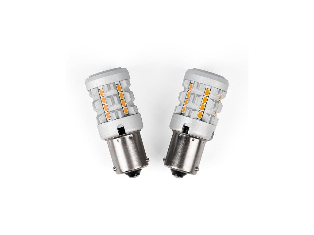 Nová generácia A- CLASS LED autožiaroviek s päticou BAU15S, oranžová.