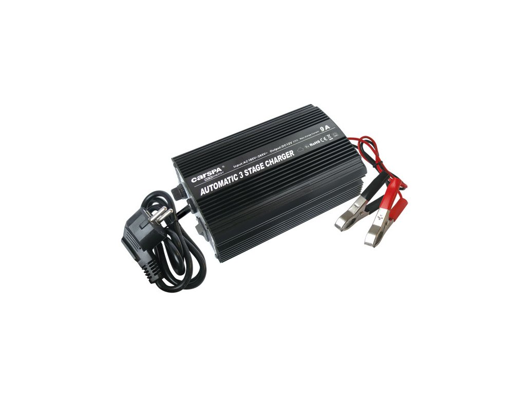 Třístupňová mikroprocesorem řízená plně automatická nabíječka olověných akumulátorů s max. nabíjecím proudem 9A. Je určena pro nabíjení různých typů olověných akumulátorů do 100Ah. Nabíječka obsahuje veškeré potřebné ochrany, jako ochrana proti přepólování, zkratu, přetížení a přehřátí a má vestavěnou velmi dobrou teplotní kompenzaci pro bezproblémové použití v širokém rozsahu teploty prostředí, ve kterém je použitá. Indikační LED zobrazují aktuální fázi, v jaké se nachází akumulátor a další stavy nabíječky.