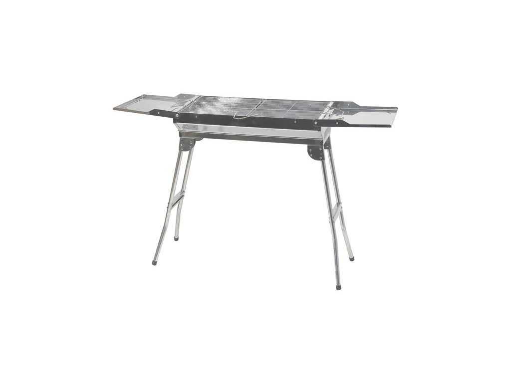 Konštrukcia je vyrobená z kvalitnej nerezovej ocele s lesklým povrchom. Stabilitu zaisťujú vyklápacie nohy. Rozmery grilu 112 x 30 x 71 cm.