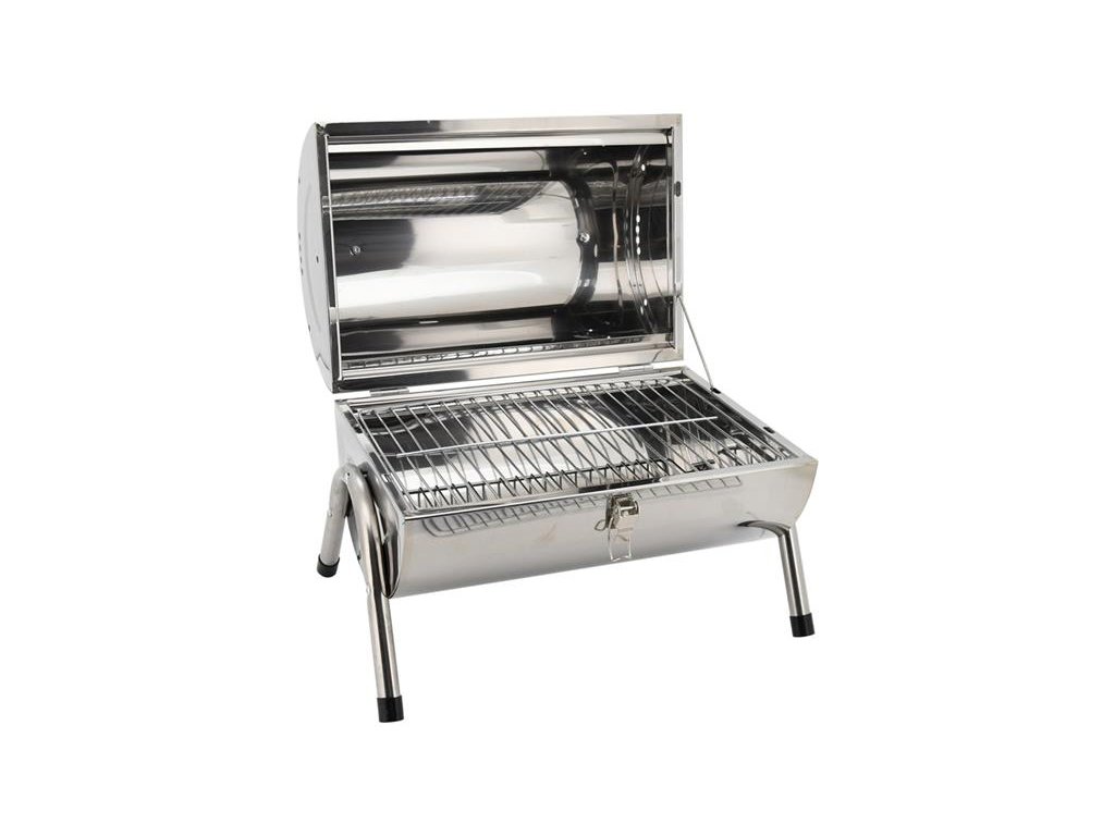 Konštrukcia je vyrobená z kvalitného nerezového plechu s lešteným povrchom. Drevené madlo zaistí pohodlné prenášanie zariadenia. Stabilitu zaisťujú štyri kovové nohy, priskrutkované k telu grilu.