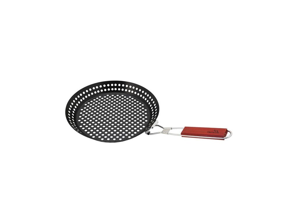 Dierovaná grilovaciu panvicu so skladacou rukoväťou, pre grilovanie, do kempu a ďalšie outdoor využitie.