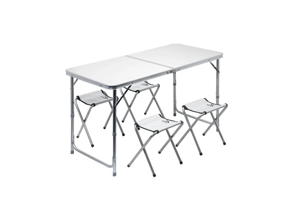 Stůl kemping CATTARA DOUBLE teleskop. šedý + 4x židličkaStôl Double je skladací, teleskopický stôl z Aluminia, s rovnou plochou s bielym vzorom, so štyrmi skladacími stoličkami.