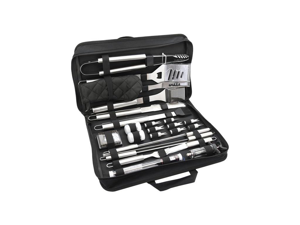 Sada obsahuje všetky nástroje na prípravu a konzumáciu najrôznejších pokrmov, ale aj následnú údržbu grilu. Všetky nástroje sú navyše kvalitne spracované z nerezovej ocele.