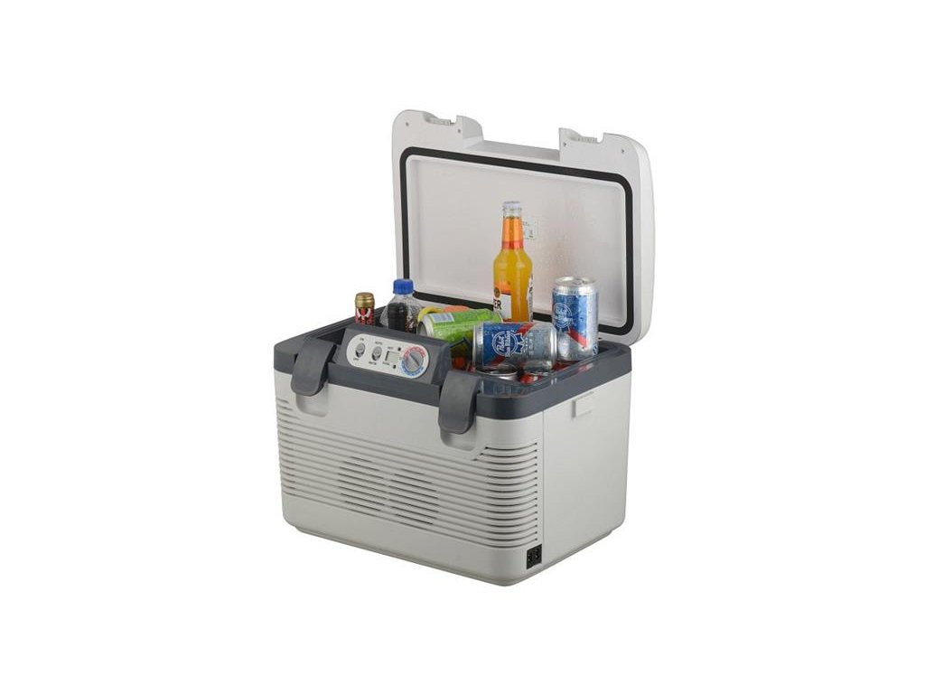 Autochladnička COMPASS 07130 19lPrenosný chladiaci box s možnosťou ohrevu, napájanie zo zásuvky autozapaľovača 12 V alebo 24 V a tiež z bežnej zásuvky 230 V, vnútorný objem 19 litrov. Ideálny spoločník na cesty, dovolenku, piknik, alebo aj na nákupy. Ide o dvoch ventilátorový systém chladenia neobsahujúce žiadne freóny, ktorý umožňuje dosiahnuť vnútri boxu teplotu o 21 - 23 ° C pod okolitú teplotu (pri 25 ° C). Systém je navyše vybavený aj režimom ohrevu, kedy je možné udržiavať vo vnútri boxu teplotu 50 - 65 ° C.
