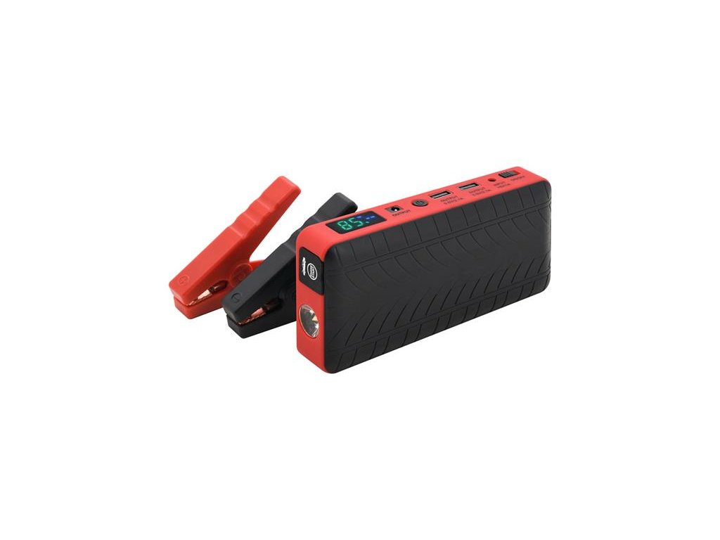 Powerbanka s funkciou núdzového štartovania vozidla, s LED displejom zobrazujúcim aktuálny stav nabitia a ďalším príslušenstvom.