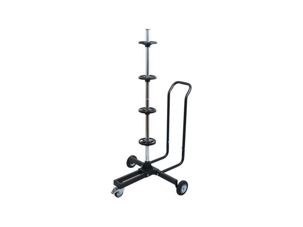 Držák zabírá jen velmi málo místa a je opatřen kolečky pro usnadněnou manipulaci. Kolečka jsou gumová a jsou opatřena kovovým středem a kuličkovými ložisky. Jedno z koleček je navíc bržděné, držák se tak nechtěně nepohybuje. Díky kovovému designu je zaručena stabilita zařízení i v plné zátěži. Jednoduchá montáž držáku zajišťuje snadné a rychlé použití. Určeno pro 4 disky s pneumatikami o velikosti 13“ - 18“ (max. 235/45 R18).