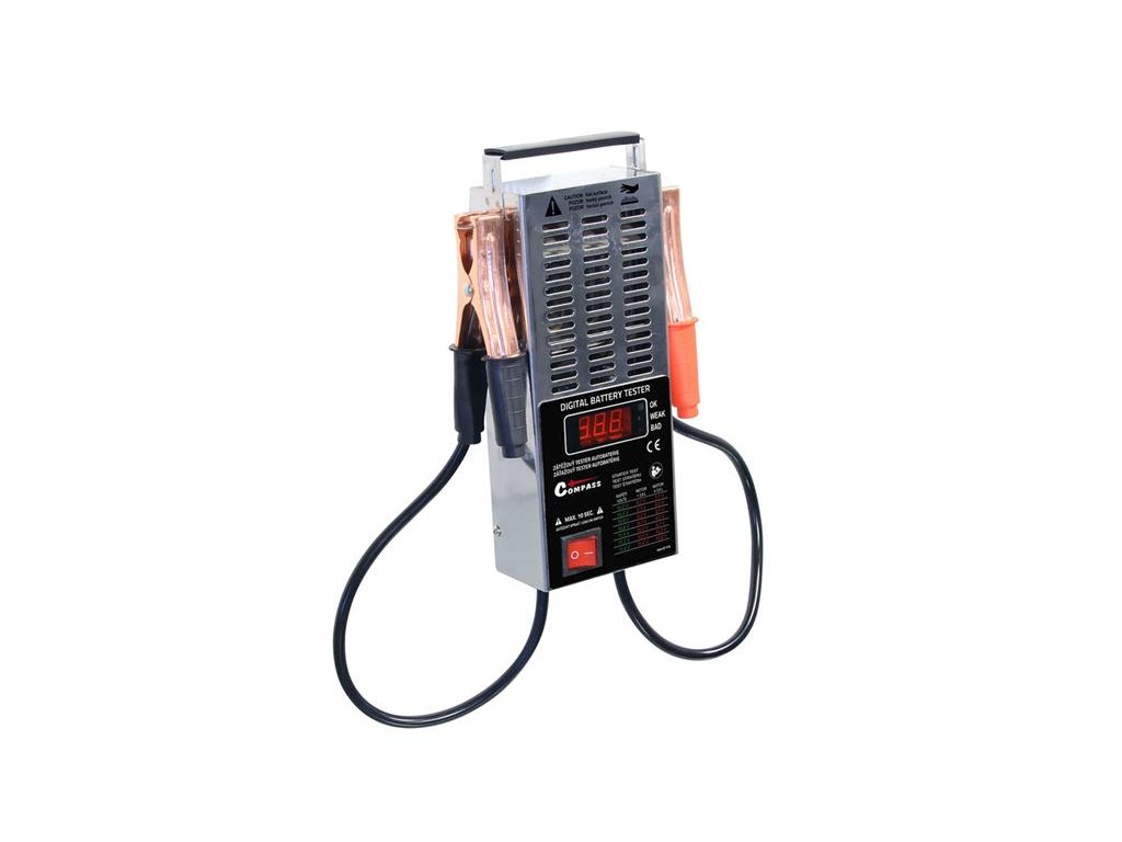 Tester autobatérie záťažový COMPASS 07172 digitálnyZátěžový tester pro důkladné prověření stavu autobaterie. Pomocí zátěže 100 Ampér umožní kontrolu stavu nabití a zároveň to, do jaké míry je akumulátor opotřebovaný. Tento tester nevyžaduje žádný napájecí zdroj (je napájen přímo z měřené autobaterie), takže jeho použití je velmi snadné a mobilní. Je osazen zátěžovým obvodem, dvěma svorkami pro připojení k akumulátoru a displejem pro zobrazení výsledku měření.