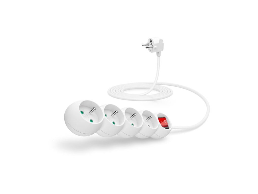 PowerRex 4 White - Predlžovací kábel s inteligentným vypínačom - Premium predlžovačka s 4 zásuvkami v 45° uhle pre objemné adaptéry. Hlavný vypínač odpojí všetky spotrebiče naraz (ideálne na dovolenku). Detská ochrana - zásuvky sa aktivujú len pri súčasnom zasunutí oboch kontaktov. Skrytý vypínač eliminuje náhodné vypnutie, závesné očko umožňuje montáž na stenu. Európsky certifikovaná, max. príkon 2500W. Svetelná indikácia prevádzky. Bezpečné riešenie pre domácnosť, kanceláriu i dielňu.Dodatočné parametre