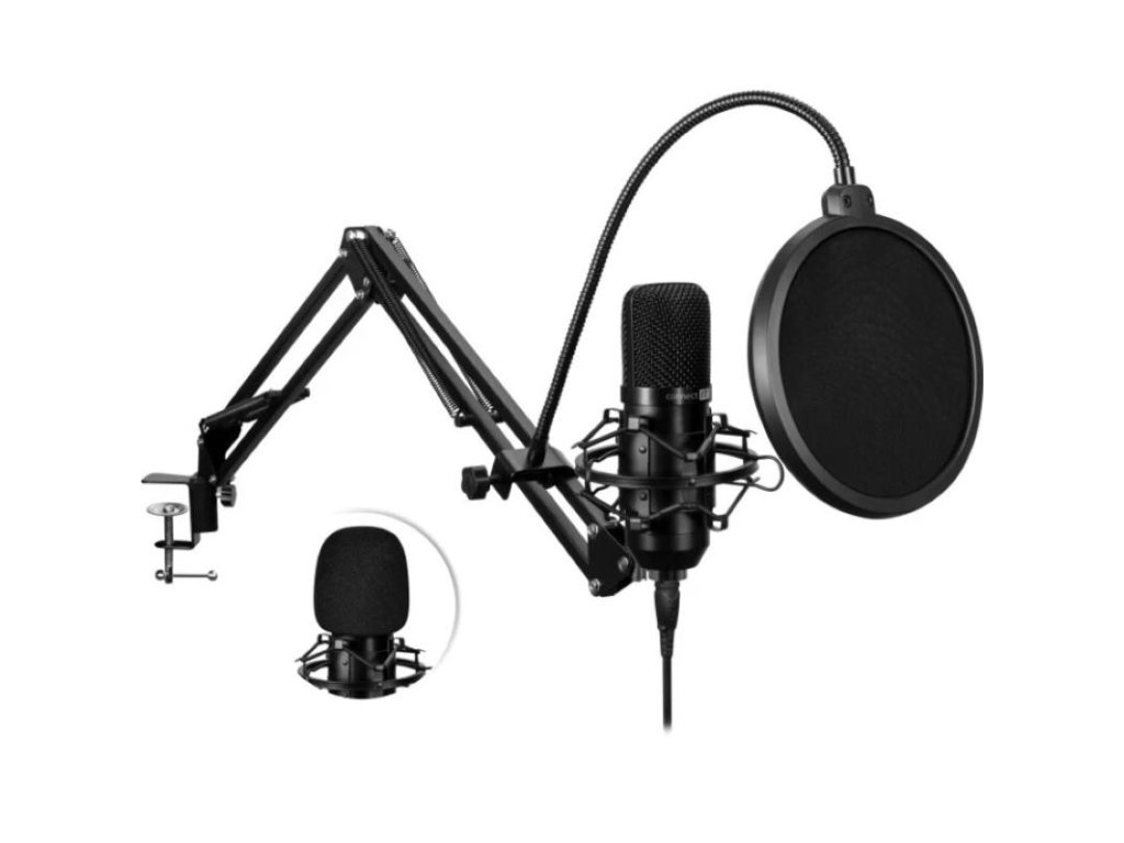 ProMic USB BLACK CMI-9010-BK - Profesionálny USB mikrofón s nastaviteľným teleskopenským ramenom a 150mm POP filtrom. Ideálny pre streamovanie, gaming, záznamy a video hovory. Kardioidná smerová charakteristika potláča nežiaduce zvuky, frekvenčný rozsah 20 Hz-16 kHz zabezpečuje kvalitný zvuk. Pružinový mechanizmus s troma kĺbmi umožňuje presné nastavenie. Kompatibilný s Windows/Mac OS, napájanie cez USB. Oceľová konštrukcia s eloxovaným povrchom, 2,5m kábel. Kompletné riešenie pre domáce i profesionálne použitie.Dodatočné parametre
