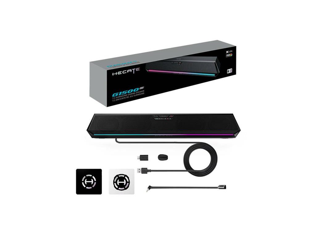 Zdôraznite charakter svojho herného stojana! Soundbar ponúka farebné podsvietenie RGB, ktoré váš herný zážitok ešte viac pohltí. Vyberte si z 13 dynamických efektov a oživte svoj herný priestor zaujímavými vizuálnymi efektmi. K dispozícii máte okrem iného režim Rhythm, ktorý svetlo roztancuje v rytme vašich obľúbených skladieb, alebo Breathing, vďaka ktorému bude svetlo jemne pulzovať, rovnako ako váš dych. Vďaka 168 miliónom farieb môžete farbu podsvietenia ľahko prispôsobiť svojej nálade. K dispozícii je aj špecializovaný softvér Hecate, ktorý vám umožní upravovať podsvietenie pokročilejším spôsobom, a získate aj možnosť prepojenia s ďalším hardvérom radu Hecate.