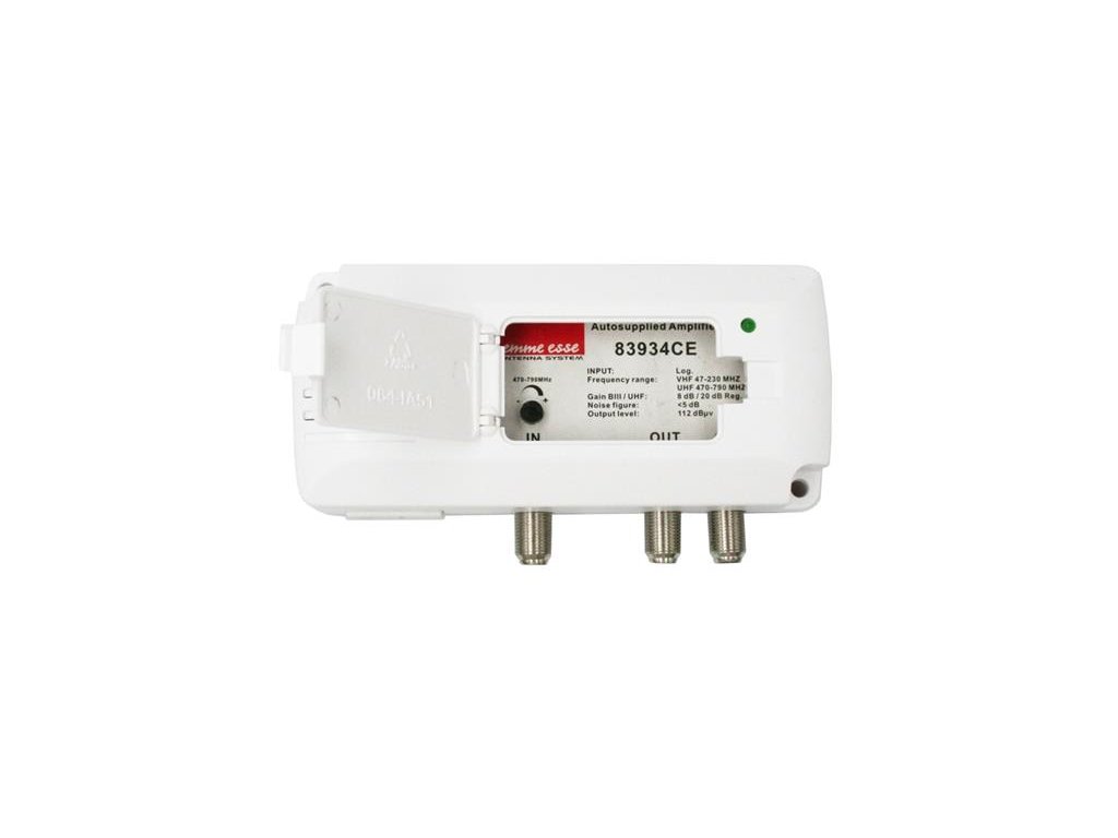 Anténny zosilňovač Emme Esse 83934CE LTE Free, VHF+UHF, malý domovej aj do interiéruTento malý domový zosilňovač je navrhnutý tak, aby hradil straty signálu pri potrebnom rozšírení existujúceho domáceho rozvodu o ďalšie účastnícke zásuvky, s ktorými v pôvodnom návrhu nebolo počítané.