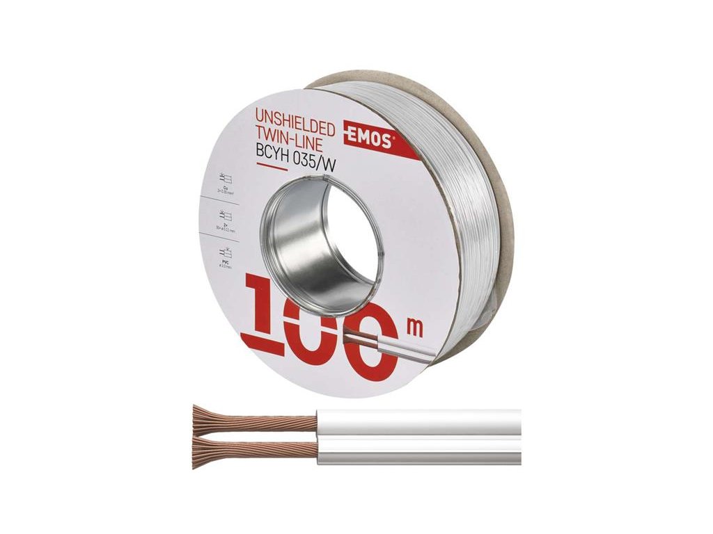 EMOS Dvojlinka netienená 2x0,15mm biela, 100m