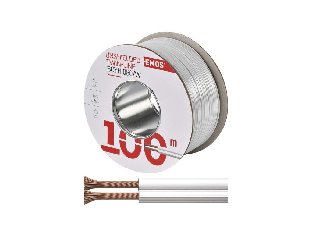 EMOS Dvojlinka netienená 2x0,50mm biela, 100m