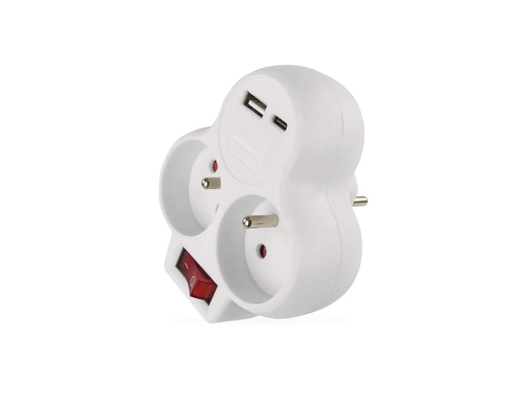 Adaptér rozbočovací s vypínačom a USB výstupom.