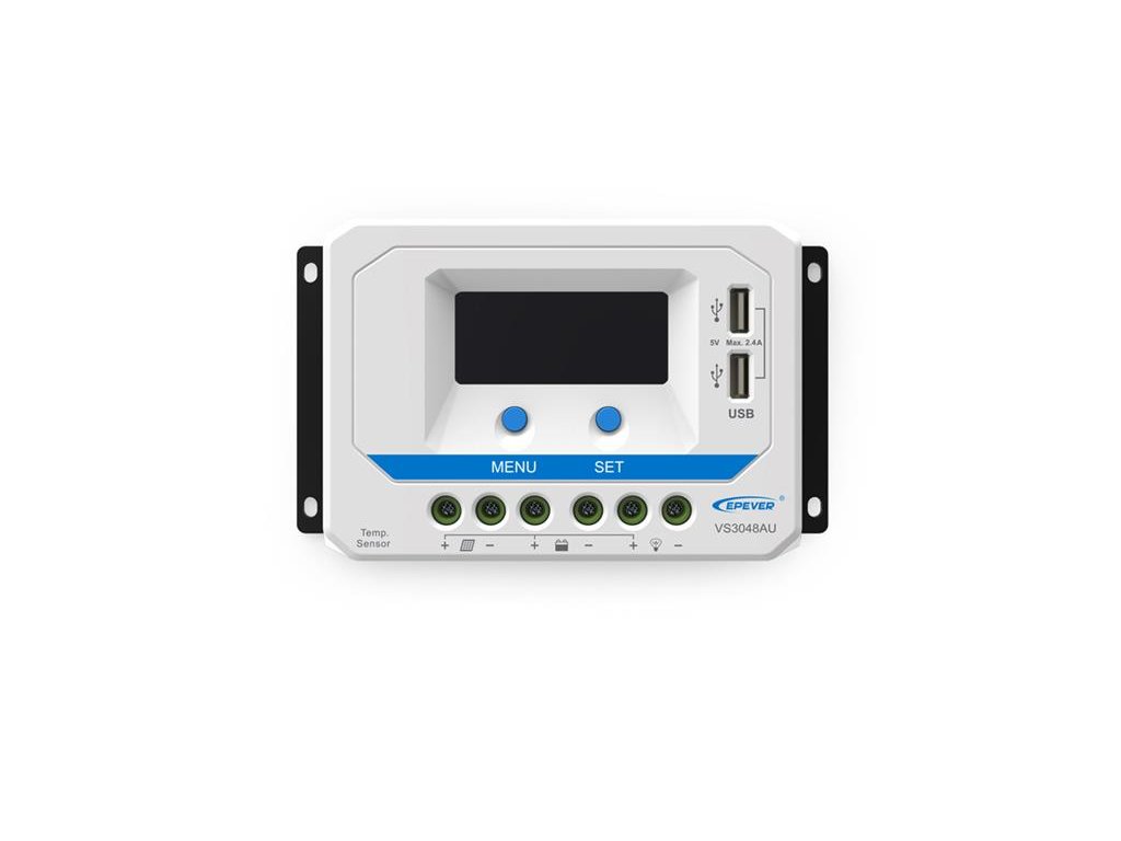Solárny regulátor PWM EPsolar 10A 12V / 24V s displejomKvalitný solárny PWM regulátor 10A 12V / 24V s prehľadným vstavaným LCD displejom a dvoma USB výstupy. Vhodný len pre panely s výkonom cca 150Wp / 12V batérie a 300Wp / 24V batérie.