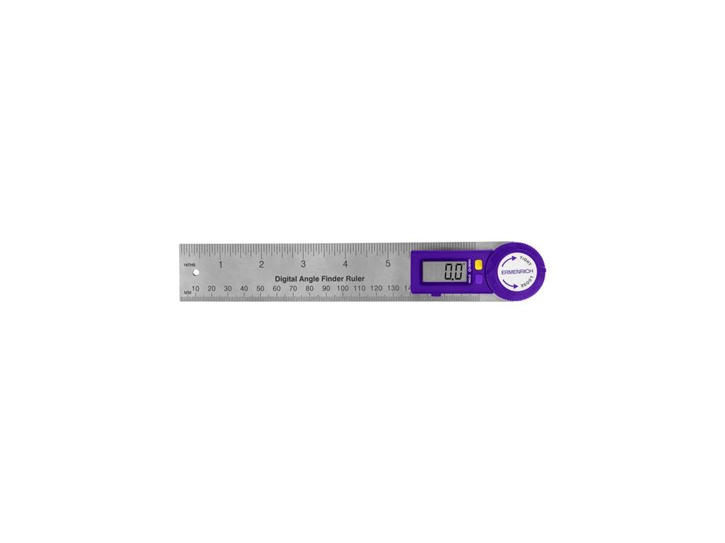 Digitálny uhlomer Ermenrich Verk DR30 s metrom je praktický nástroj typu 2v1, ktorý vám pomôže s rôznymi opravami, výstavbou, pri vybavovaní a inštaláciách nábytku. Dokáže merať uhly medzi rovinami s vysokou presnosťou (s chybou iba 0,3 °). Umožňuje tiež meranie dĺžky, čo je nevyhnutné pre vyznačovanie územia. Dáta sa zobrazujú na integrovanom LCD displeji. Hodnoty je možné „zmraziť“ pomocou tlačidla Hold (Podržanie). Zariadenie môžete tiež nastaviť na nulu.
