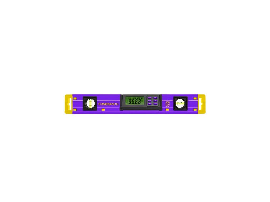 Digitálna vodováha Ermenrich Verk LY40 je kompaktný nástroj, ktorý kombinuje funkcie digitálneho uhlomeru a štandardnej bublinkovej vodováhy. Vodováha je určená na stavebné a opravárenské práce, vyrovnávanie pri montáži a uvádzaní do prevádzky a presné polohovanie obrobkov na kovoobrábacích a drevoobrábacích strojoch. Prístroj je možné použiť v každodennom živote – pri montáži a upevňovaní nábytku na stenu, záclonových tyčí a ďalších konštrukčných prvkov. Vodováha meria sklon objektu v rozsahu 0–360° v štyroch smeroch a výsledky zobrazuje na LCD displeji. Ponúka meranie v stupňoch, percentách, mm/m a in/ft.