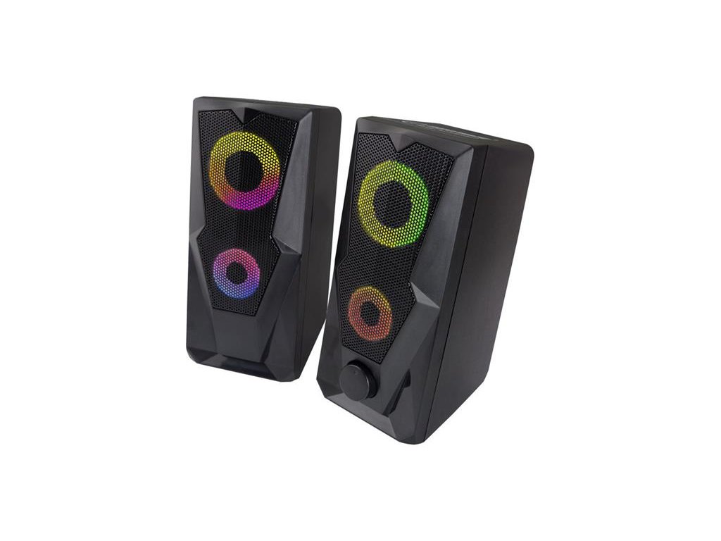 Vysoko kvalitný stereofónny reproduktor s LED RAINBOW osvetlením pre notebooky a stolné počítače. Poskytuje čistú a prirodzenú kvalitu zvuku. Fungujú dobre so všetkými počítačovými jednotkami s reproduktormi a USB výstupy. Je vybavený vstavanou reguláciou hlasitosti. Vysoko kvalitné materiály používané pri ich výrobe chráni pred statickou elektrinou a elektromagnetickým rušením.