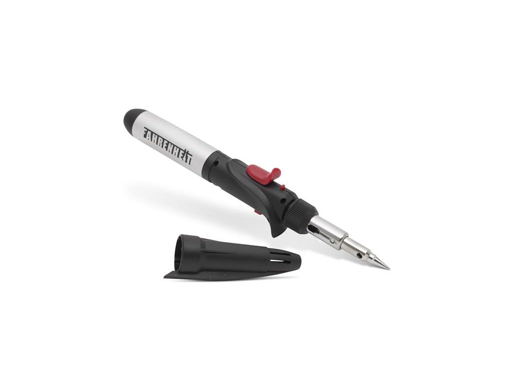 Multifunkčná plynová spájkovačka Fahrenheit spája v sebe vlastnosti plynovej spájkovačky a tiež teplovzdušnej pištole.Môžu sa použiť rôzne typy jemného elektronického spájkovania, ohrievania, zmršťovania (zmršťovacia bužírka. Tento kompaktný prístroj má rôzne užitočné funkcie:bezpečnostné tlačidlo, regulátor plameňa, tlačidlo nepretržitého plameňa, tlačidlo na uhasenie plameňa, piezo zapalovanie. Plynovú spájkovačku môžete použiť po odskrutkovaní hrotu aj ako teplovzdušnú pištoľ. Plynú nádrž je možné opäť naplniť, vďaka čomu môžete prístroj dlhodobo používať.