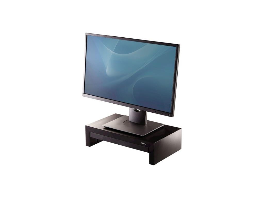 Stojan pod monitor Designer Suites firmy Fellowes je určený pre LCD a TFT obrazovky do maximálnej hmotnosti 18 kg. Sami si môžete regulovať výšku do 3 pozícií (110, 130 a 150 mm). Protišmykové gumové nožičky zabraňujú posunu po stole.