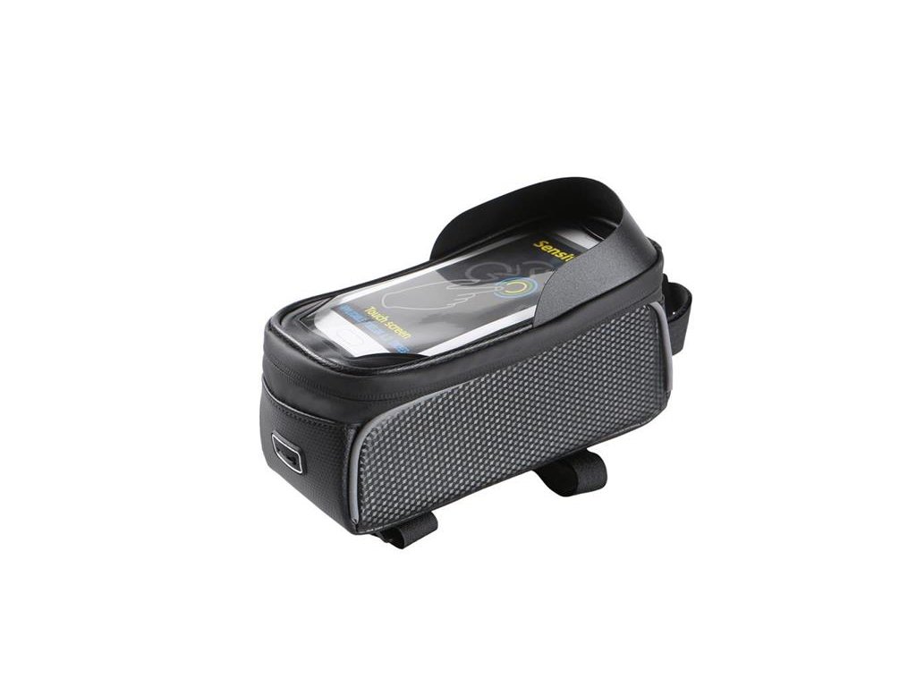 Vodeodolná taška na bicykel vám umožní pohodlne používať telefón alebo GPS pri jazde na bicykli, a to aj za daždivého počasia. Zostavenie tašky je rýchle a jednoduché - nie sú k tomu potrebné žiadne nástroje. Vďaka vodivé dotykové fólii môžeme ovládať dotykový displej, bez toho aby sme museli telefón vyťahovať z tašky. Výrobok je možné namontovať nielen na riadidlá bicykla, ale aj na kočík, bežecký pás a riadidlá motocykla alebo skútra, čo zaisťuje bezpečnosť vďaka reflexným prvkom.