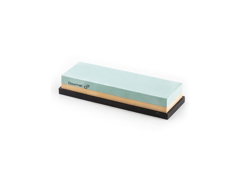 Obojstranný brúsny kameň G21 so zrnitosťou 1 000 / 3 000 vám umožní dokonale nabrúsiť všetky druhy kuchynských nožov, vrátane damaškových. Brúsny kameň G21 je určený na brúsenie s vodou. Vedeli ste, že sa najčastejšie pri varení zarežete tupým nožom? Dokonale ostrý nôž je v kuchyni polovica úspechu. Je to základné vybavenie každého amatérskeho aj profesionálneho kuchára. Obojstranný brúsny kameň G21 so zrnitosťou 1 000 / 3 000 vám umožní dokonale nabrúsiť všetky druhy kuchynských nožov, vrátane damaškových. Brúsny kameň G21 je určený na brúsenie s vodou. Nože nikdy neskúšajte brúsiť suchým brúskom, vždy ho najskôr namočte vodou. Pridaním vody pri brúsení vymývate z pórov brúsneho kameňa odbrúsené častice a zachovávate tak jeho brúsny efekt. Jadro brúsky je tvorené odolným tvrdým cementom. Brúsny povrch - zmes carborunda a diamantu, robí z brúsky G21 univerzálny vysoko kvalitný brúsik vynikajúcej tvrdosti.