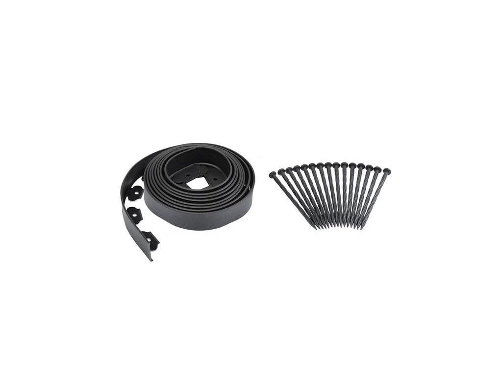 V základnom balení nájdete všetko. Ako obrubník s dĺžkou 5 m, tak aj 15 klincov pre spoľahlivé uchytenie neviditeľného obrubníka k zemi. Na spodnej strane obrubníkového pásu sú otvory, do ktorých vložíte priložené klince a zatlčte ich.