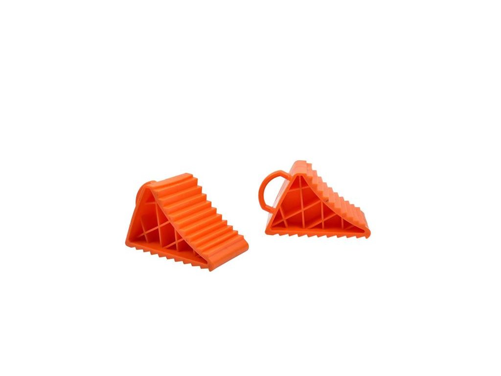 Súprava robustných klinov pod kolesá. Sú vyrobené z vysoko kvalitného plastu a určené na zaistenie rôznych typov vozidiel proti náhodnému pohybu.