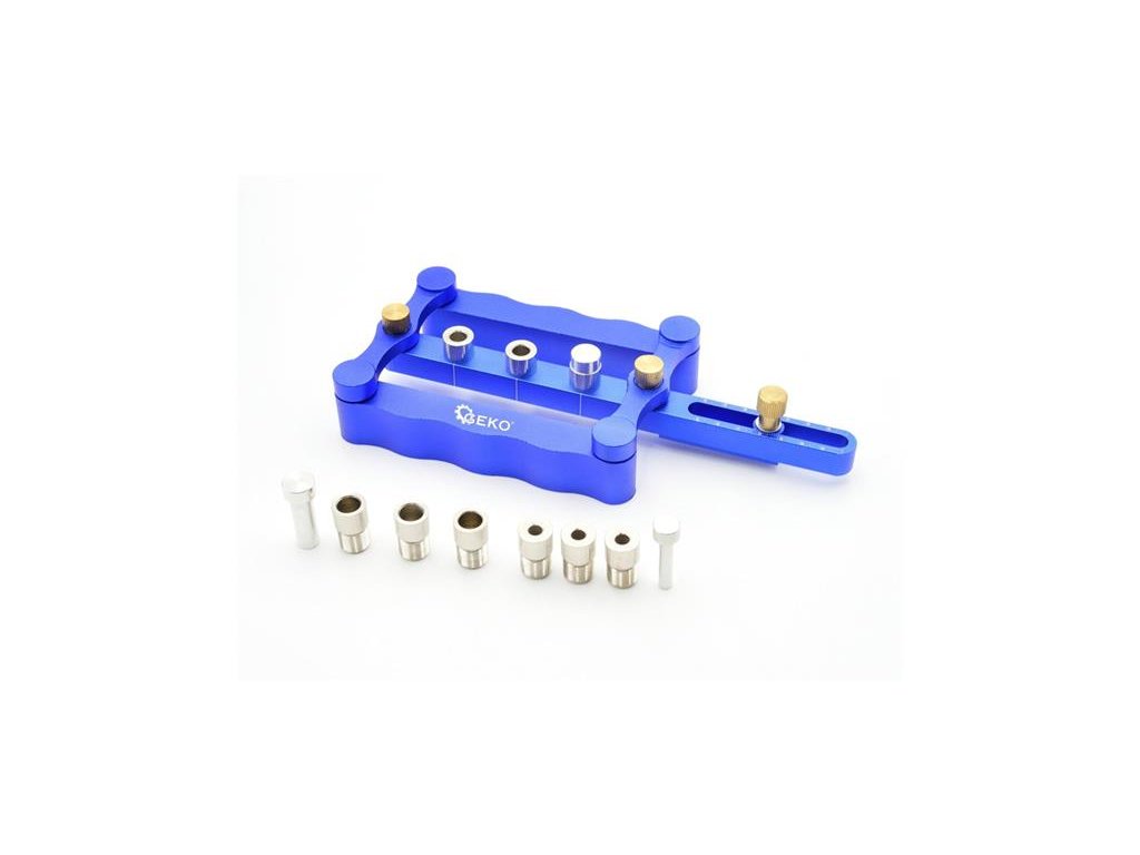 Nástroj určený na vytváranie kolíkových spojov drevených dielov a dielov vyrobených z materiálov na báze dreva. Šablóna umožňuje zhotovenie otvorov na hranách av rovine. Telo nástroja je vyrobené z hliníkovej zliatiny a polohovacie puzdrá z kalenej ocele.