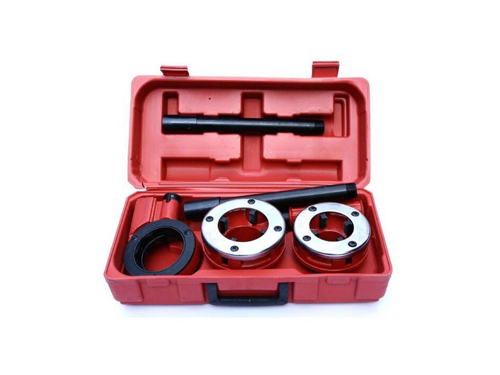 Sada závitníků na trubky,3 očka, GEKOHydraulický závitorez pre rúrky v sade s 2 závitníkami. Nože závitorezu vyrobené z CrV legovanej ocele s tvrdosťou HRC v rozsahu 58-62. Uložené v liatinovom puzdre.