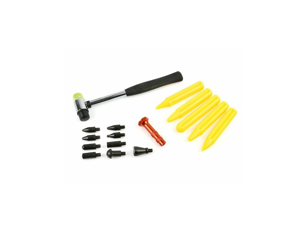 Súprava dopĺňa opravné sady na pretlačené karosérie tzv. metódou PDR. Pomocou sady na pretlačenej karosérie najskôr vytiahnete jamku alebo zárez. Po vytiahnutí jamku je nutné poklepaním (sklepávaním) plechu, pomocou tejto sady, vyrovnať deformácie okolo opravovaného miesta (vytiahnutého jamku, preliačiny). Poklep uvoľňuje napätie vzniknuté deformáciou plechu, ten sa vracia do pôvodnej podoby pred deformáciou a jamky alebo zárezy sa vyrovnávajú. Tieto práce sa vykonávajú za studena bez nutnosti tmelenia, brúsenia a lakovania poškodených miest. Oprava tak vyžaduje menej času a nie je finančne náročná. Paličky a výmenné hroty sú plastové, nepoškriabu lak auta.