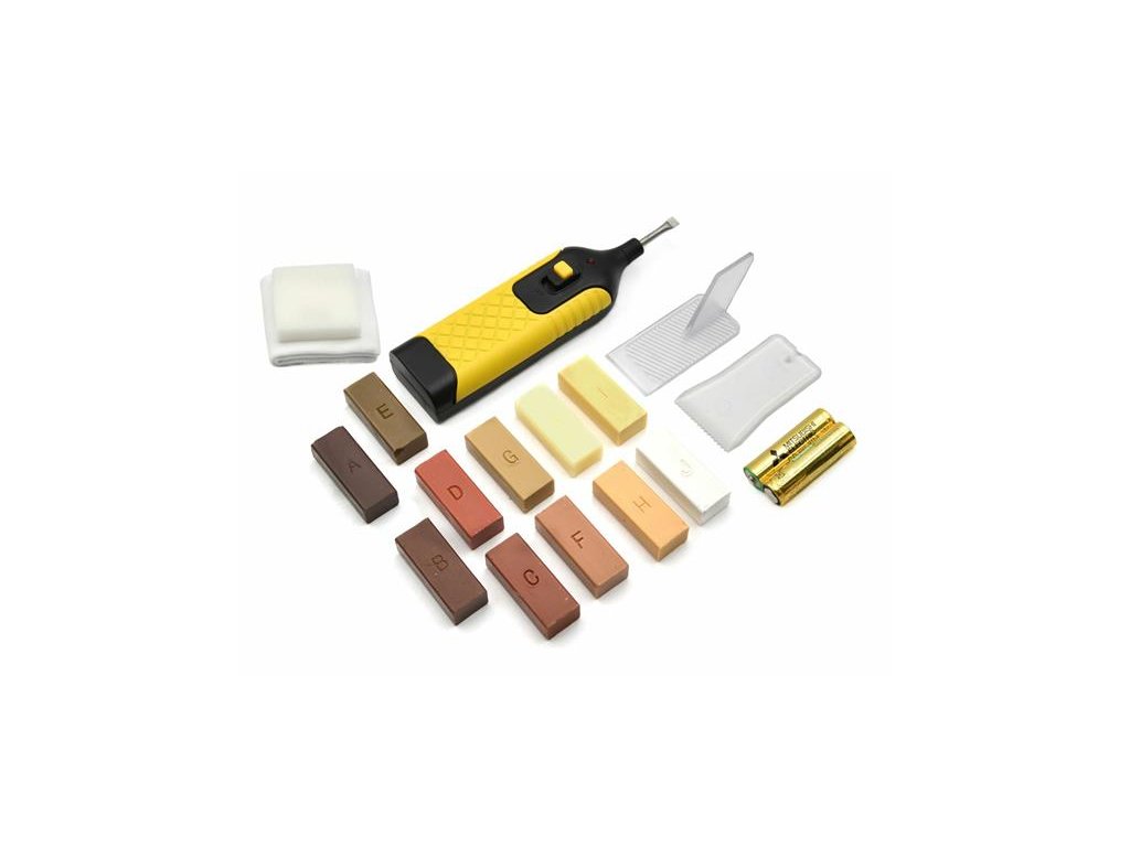 Praktická sada na opravu poškodenia panelov, nábytku, dverí a iných materiálov podobných drevu a pod. od značky GEKO. Súprava umožňuje esteticky a lacno zakryť praskliny, ryhy a dokonca aj vyvŕtané diery. Výplne v rôznych farbách, ktoré je možné medzi sebou ľubovoľne miešať, umožňujú takmer dokonalé farebné zladenie s opravovaným povrchom. Typy poškodenia, ktoré je možné opraviť: odštiepky, praskliny, dutiny, vyvŕtané diery