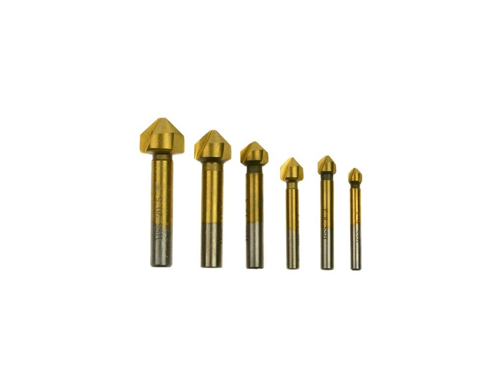 Súprava vysoko kvalitných kužeľových fréz GEKO. Sada obsahuje šesť fréz s priemerom 6,3-20,5 mm. Sú vyrobené z vysoko kvalitnej rýchloreznej ocele HSS TiN. Frézy s povlakom TiN sú určené najmä na obrábanie ťažkoobrobiteľných materiálov. Aplikácia povlaku TiN vedie k zvýšeniu tvrdosti vrtákov, umožňuje rýchlejší rezný proces a umožňuje získať lepšiu kvalitu obrobkov. Vrstva nitridu titánu vďaka zníženiu trecej sily znižuje opotrebenie čepele, a tým predlžuje životnosť vrtáka.