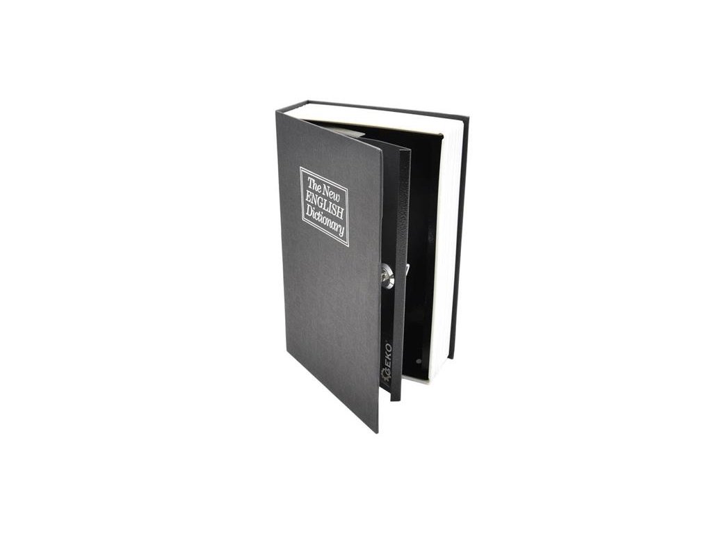 Praktická schránka na peniaze v tvare knihy s kovovou priehradkou vo vnútri. Schránka bude na nerozoznanie medzi ďalšími knihami.