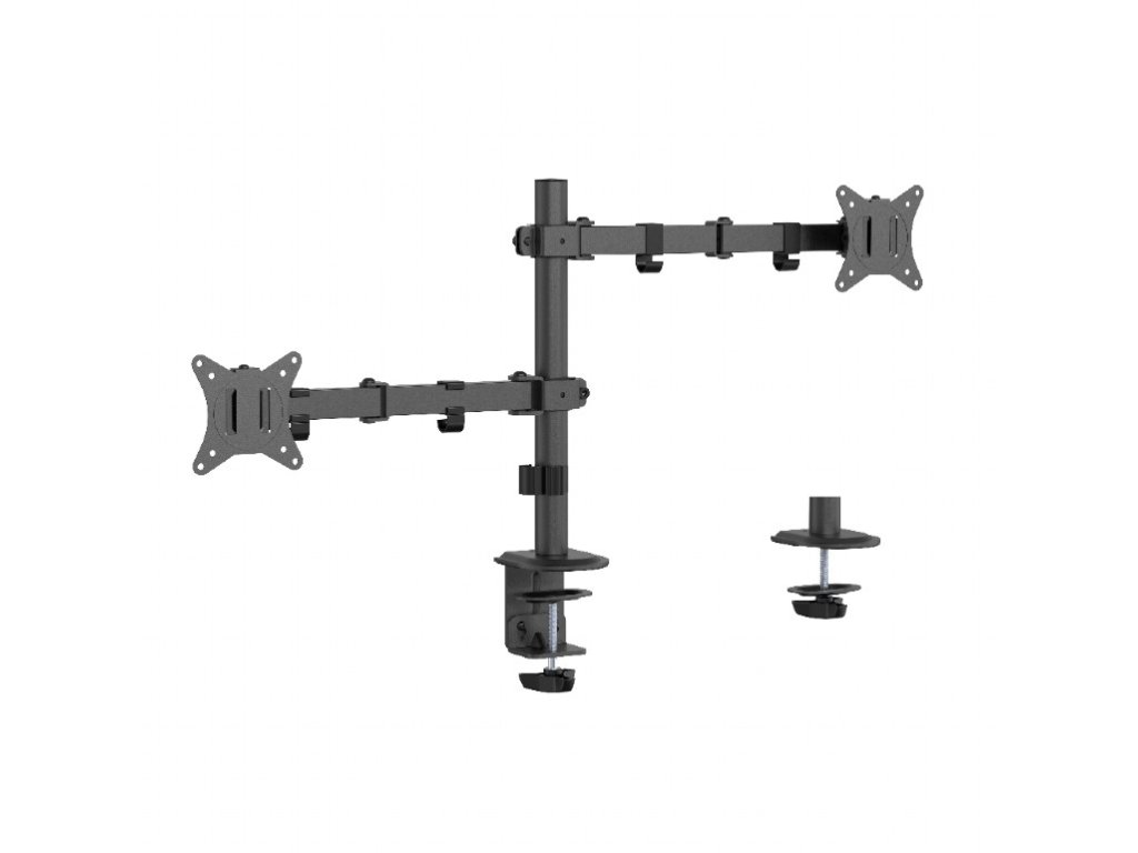 GEMBIRD MA-D2-03, Držiak na 2 monitory, 17"-32" - Stolový držiak monitora s dvojitým ramenom na monitor. Ramená umožňujú otáčanie, vysúvanie, zasúvanie alebo nakláňanie displeja a umožňujú otáčanie displeja z režimu na šírku na výšku atď.. Funguje s takmer akýmkoľvek LCD monitorom (max. 32"). Samostatné ramená umožňujú zarovnanú montáž monitorov rôznych veľkostí/značiek. Pevná stolová svorka alebo priechodka pre jednoduché a bezpečné upevnenie na vašom stole. Zabudovaný manažment káblov pre organizovaný a čistý pracovný priestor. Kompatibilné s VESA (100 x 100 mm a 75 x 75 mm)Dodatočné parametre