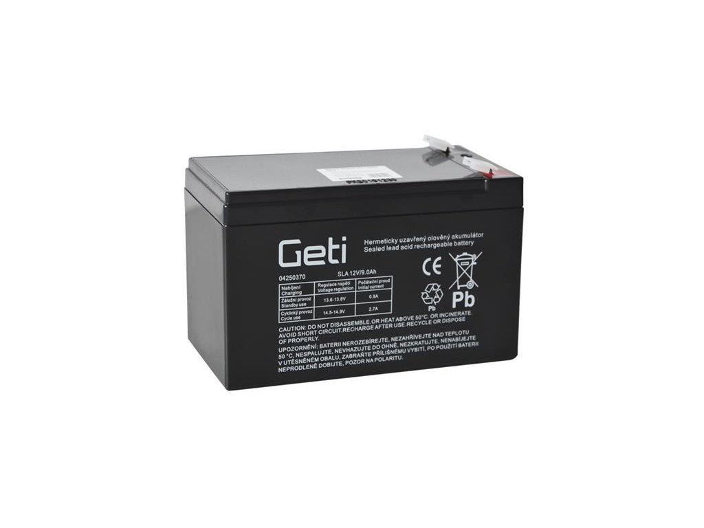 Batéria olovená 12V 9Ah Geti (konektor 6,35 mm)Olovený akumulátor Geti typu AGM je vhodný ako náhrada za batérie pre záložné systémy UPS, záložné zdroje pre všetky aplikácie EZS, EPS a telekomunikácie, záložné svietidlá a nabíjacie baterky, hračky, riadiace systémy, alarmy, výstražné mobilné a signalizačné zariadenia a pod. Jedná sa o bezúdržbový, hermeticky uzavretý akumulátor, čo umožňuje ľubovoľnú pracovnú polohu. Náhrada za batérie RBC17 pre záložné zdroje BK650EI, BE700-FR a BE700-CP.