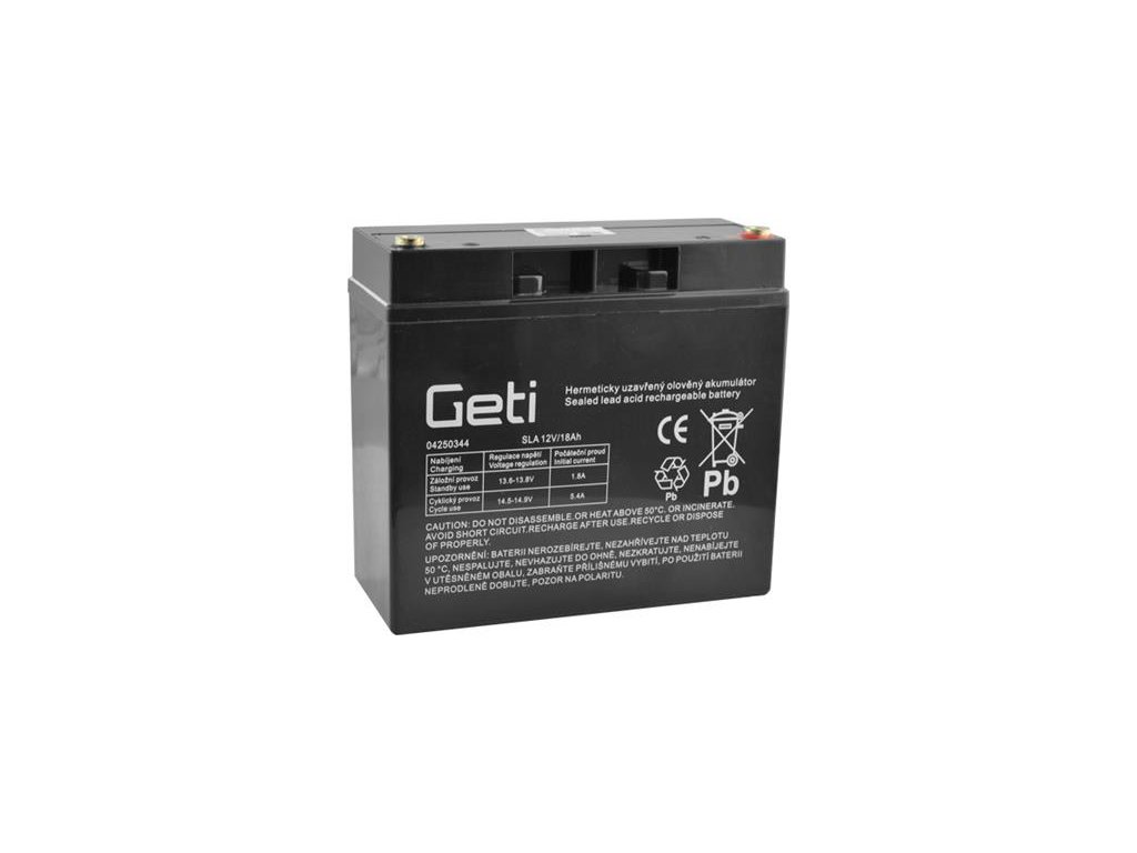 Batéria olovená 12V 18Ah GetiOlovený bezúdržbový akumulátor Geti typu AGM prémiové kvality. Je vhodný ako náhrada za batérie pre záložné systémy UPS, záložné zdroje pre všetky aplikácie EZS, EPS a telekomunikácie, záložné svietidlá a nabíjacie baterky, hračky, riadiace systémy, alarmy, výstražné mobilné a signalizačné zariadenia a pod. Jedná sa o bezúdržbový, hermeticky uzavretý akumulátor , čo umožňuje ľubovoľnú pracovnú polohu.