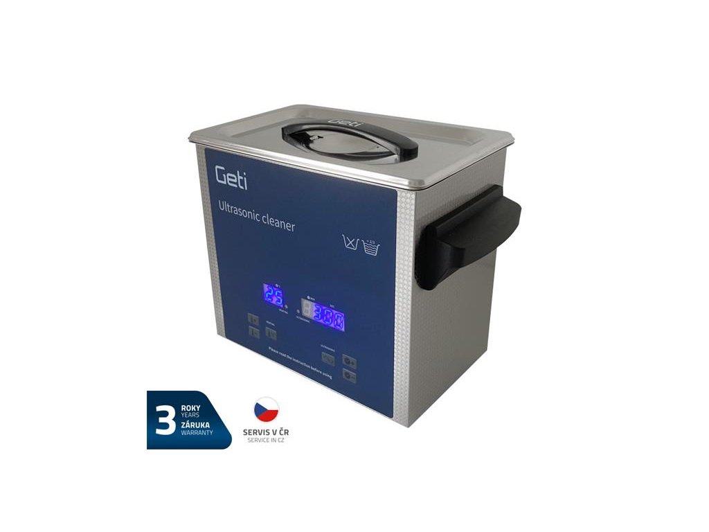 Ultrazvuková čistička Geti GUC 03B s objemom nádoby 3 l, s digitálnym displejom a frekvenciou 40 kHz spoľahlivo vyčistí šperky, okuliare, starožitný riad i jemné komponenty v IT technikevNa tento výrobok poskytujeme 3 roky záruku. Ultrazvuková čistička Geti GUC 03B s ohrevom vyčistí všetko od povrchových nečistôt a to len pomocou vody a vibrácií, ktoré vytvára ultrazvuk. Ultrazvukové čistenie je založené na kavitačním efekte spôsobenom vysokofrekvenčným vibračným signálom ultrazvukových vĺn v tekutine. Vytvára sa mikroskopické bubliny, ktoré prudko implodujú a spôsobujú kavitácii, ktorá spôsobuje intenzívne čistenie na povrchu čisteného predmetu. Bubliny sú dostatočne malé, aby prenikli mikroskopickými štrbinami a tým dôkladne a dôsledne čistili predmet. Používa sa na čistenie širokej škály nástrojov a mechanických súčastí.