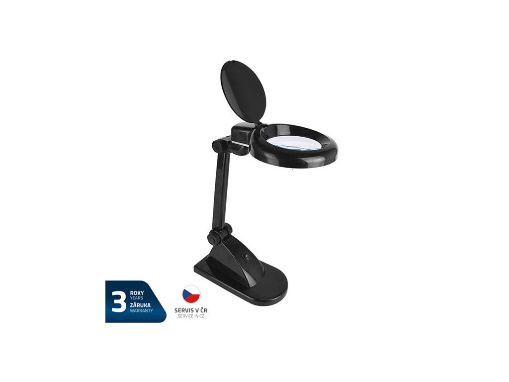 Stolná lupa je ideálny pomocník v domácnostiach, dielňach, kanceláriách a mnohých ďalších pracoviskách. Výborne sa hodí pre prácu s elektronikou a ku kontrolnej činnosti. Polohovací stojan umožňuje presné a pohodlné nastavenie lupy. Vďaka úspornému LED prisvieteniu možno s lupou pracovať aj v nevyhovujúcich svetelných podmienkach, alebo ju využiť ako stolnú lampu. K dispozícii je aj malá vložená šošovka s 12 dioptriami, ktorú možno použiť k zväčšovaniu veľmi malých dielov, nápisov (např.zisťovaní typu súčiastky a pod.).